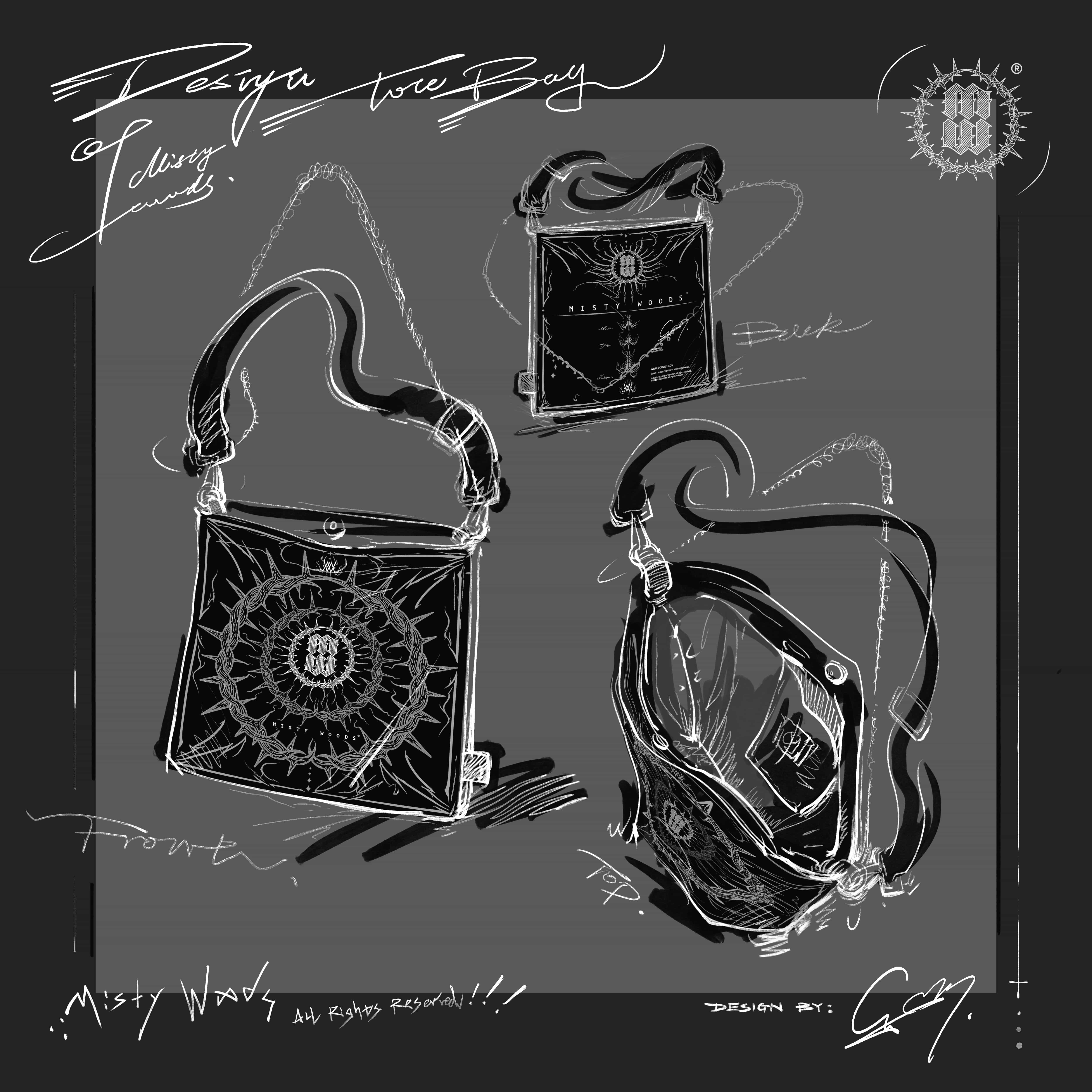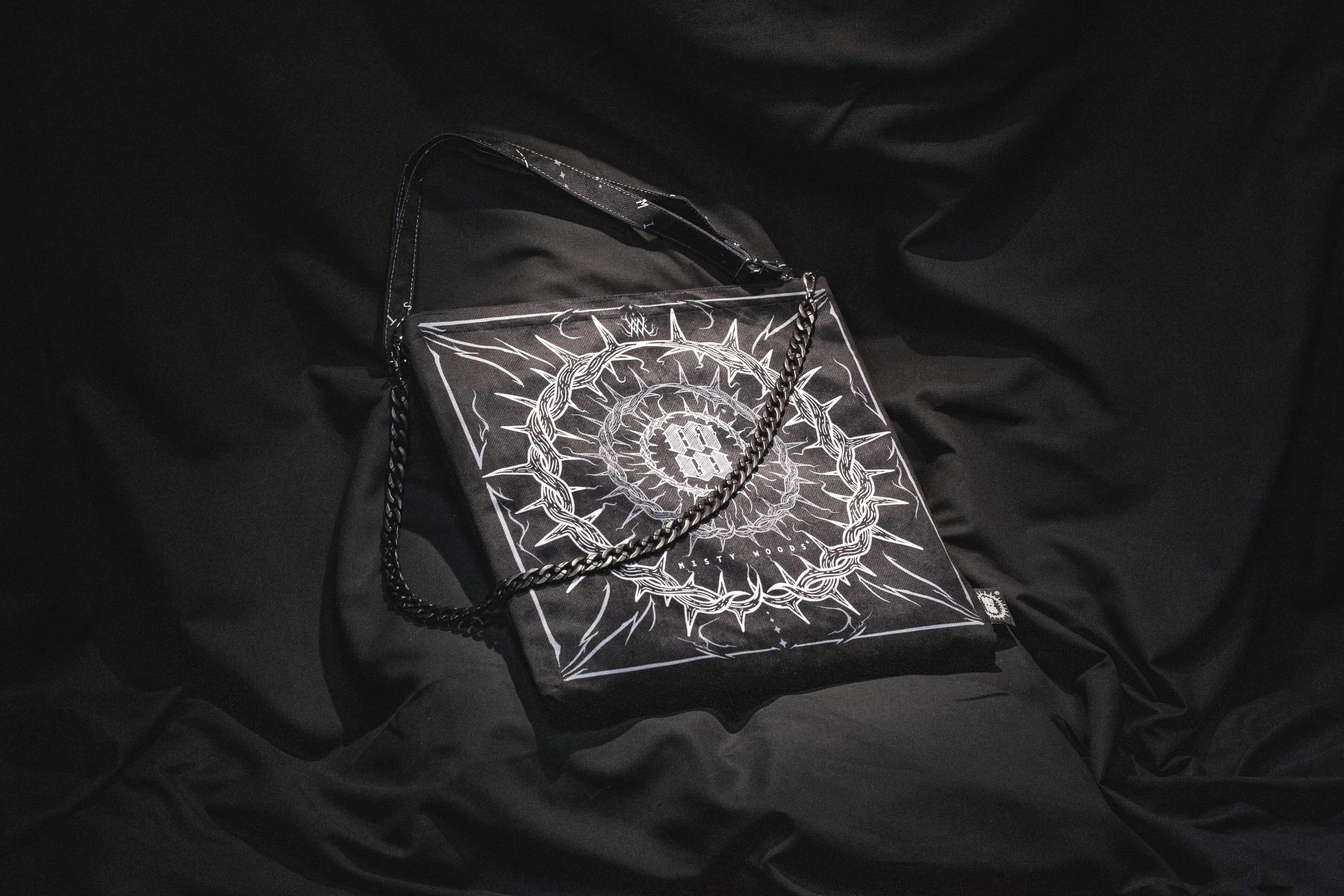 我们抱着“想做一款能装得下全尺寸黑胶唱片的包袋”的想法设计了这一系列托特包,包形灵感来自于黑胶唱片封套,而图案则是将植物根系和海洋生物与我们MISTY WOODS的Logo相融合。